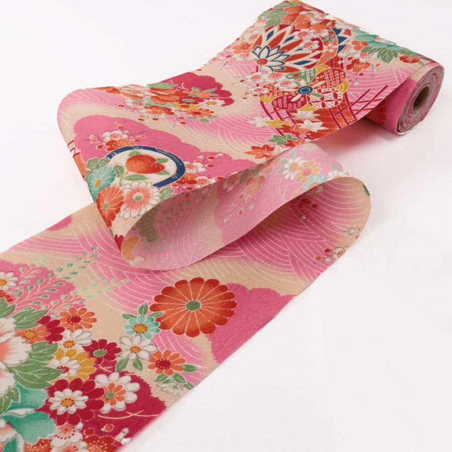 一越ちりめんカットロール・柄・15cm幅(ピンク/新柄) 10cm単位 切り売り