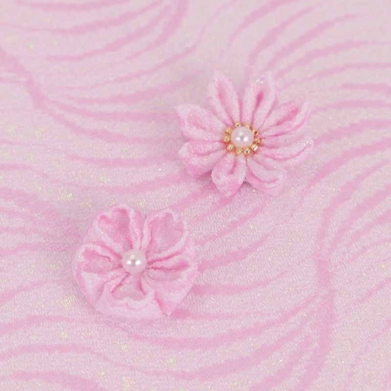 ラメ入りのきれいな縮緬でつまみ細工にも ちりめん生地 レース重ねのさざ波(白) 10cm単位 切り売り