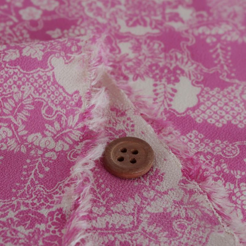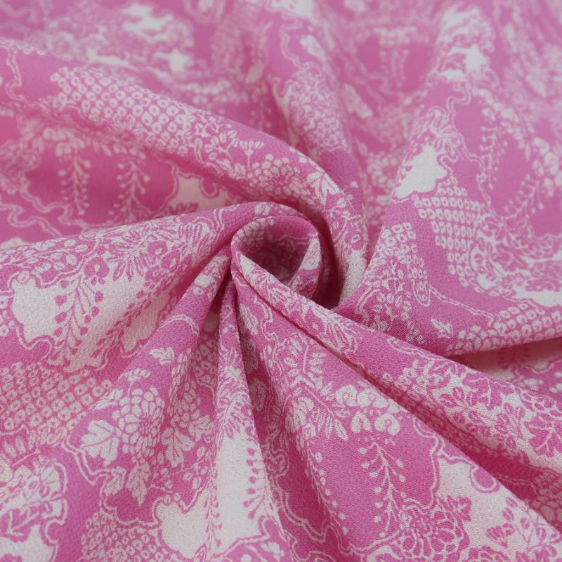 一越ちりめん生地 雪輪取り花模様(ピンク)