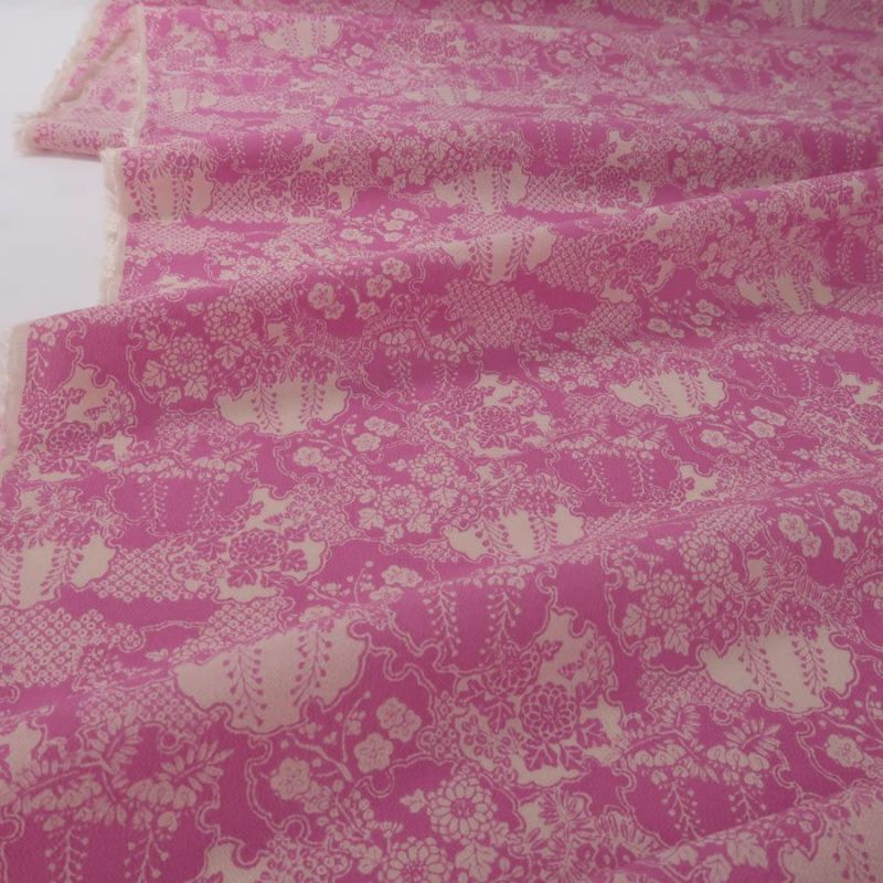●濃いピンクと淡いベージュの色使いです。かわいい色が新鮮な古典柄。