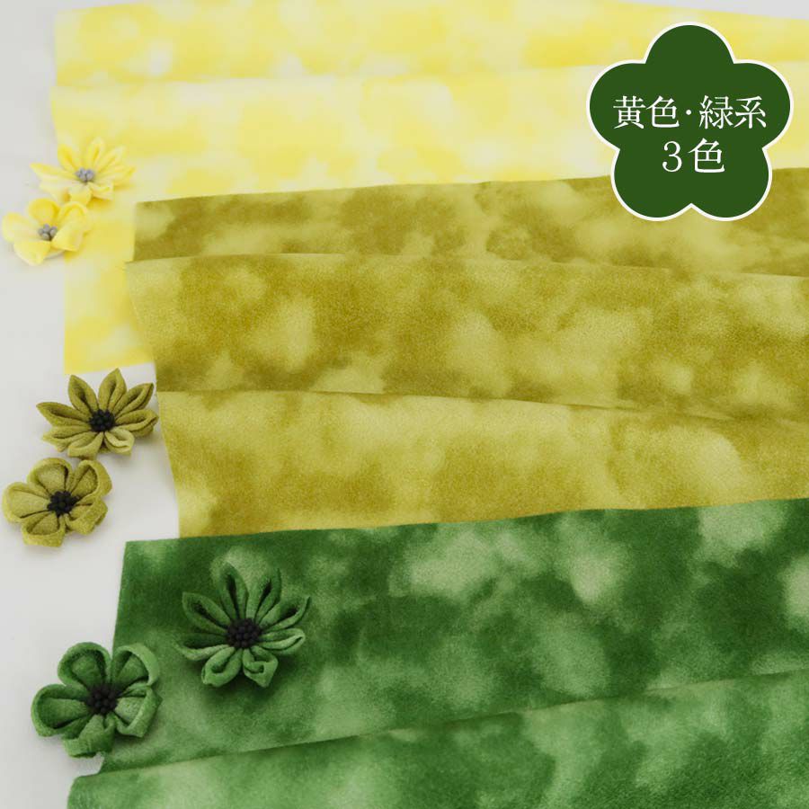 一越ちりめん しぼりむら染め風 大きめカットクロス/約35×33cm (I黄緑)