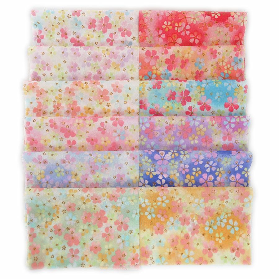 一越ちりめん生地 ふうわり花12色セット 約25×17cm