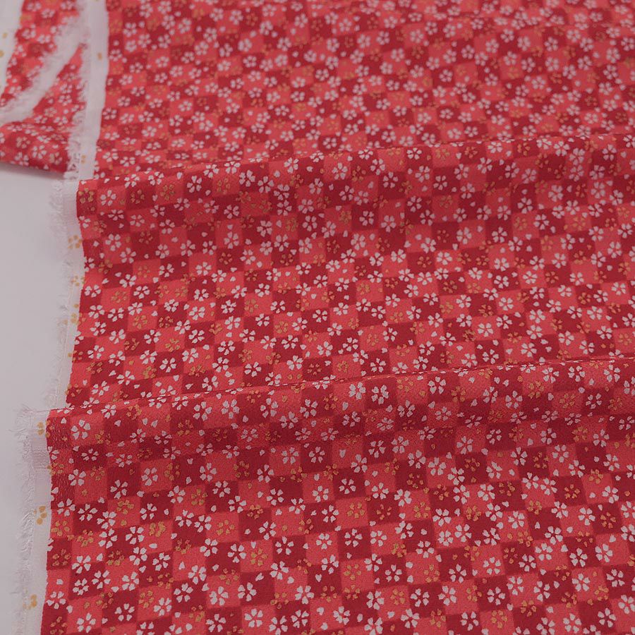 一越ちりめん生地 市松小桜(赤) 10cm単位 切り売り
