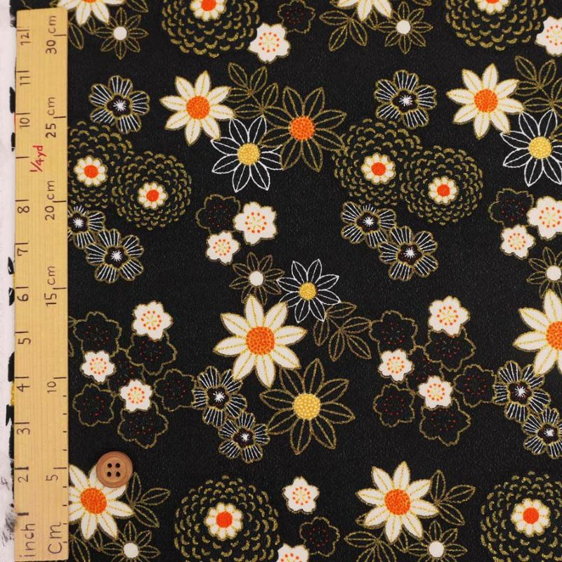 モダンな花柄のひとこし縮緬 一越ちりめん生地 モダン金彩和花柄(しぶ柿色) 10cm単位 切り売り