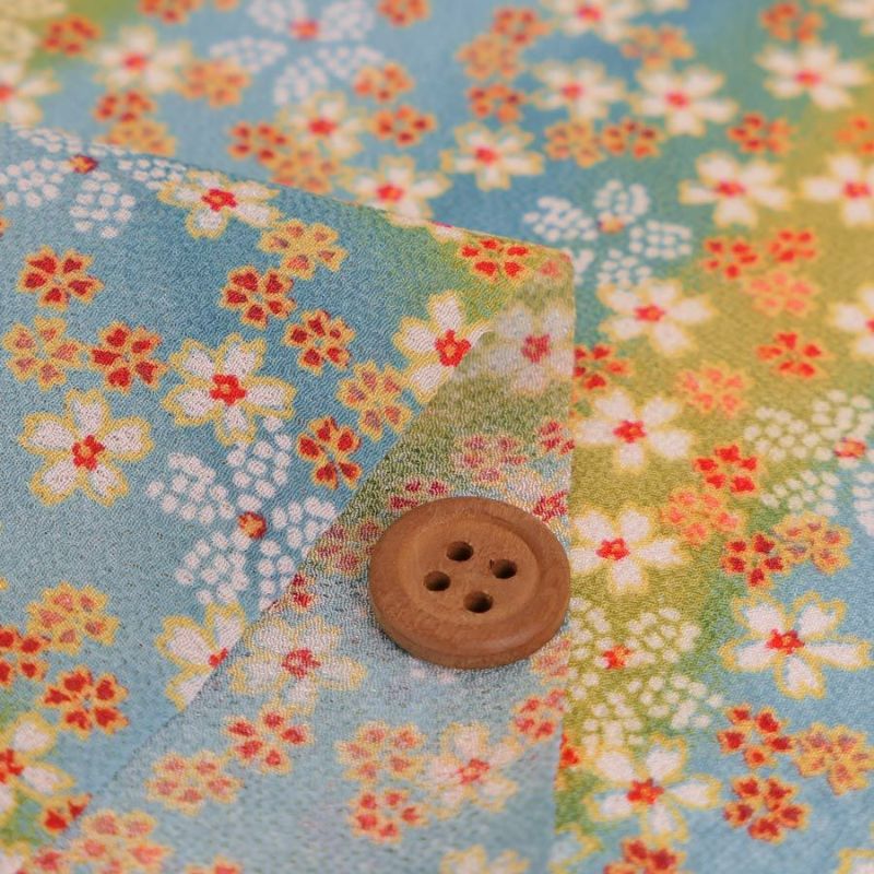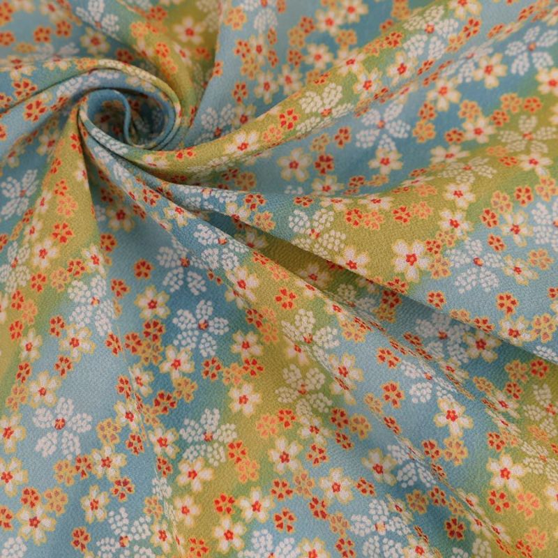 和小物にもおすすめ 一越ちりめん生地 はすぼかしに舞桜(赤) 10cm単位 切り売り