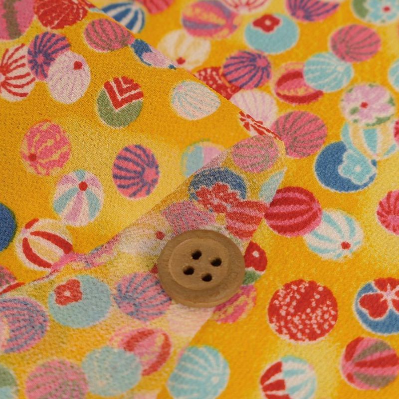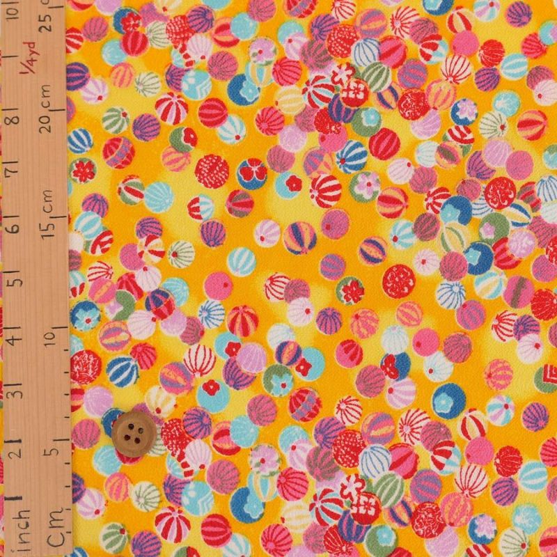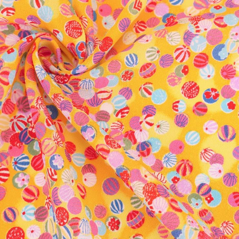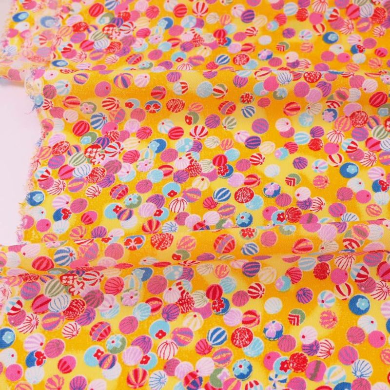 カラフルなてまりの一越縮緬 一越ちりめん生地 小まり(黄色) 10cm単位 切り売り