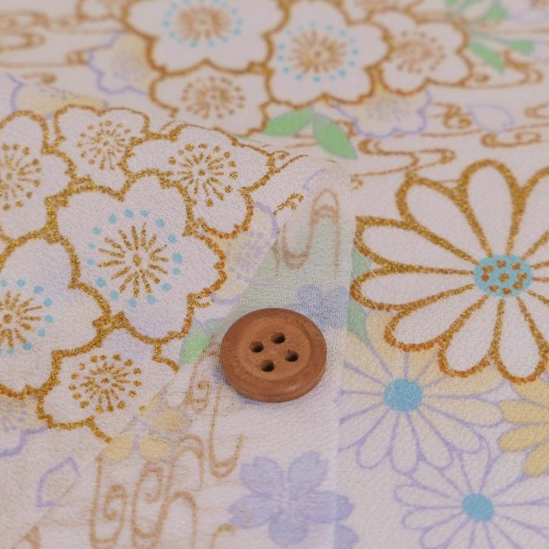 縮緬手芸・小物に 一越ちりめん生地 観世水に菊と桜(白/ピンク) 10cm単位 切り売り