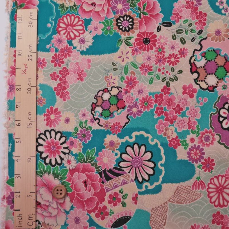 つまみ細工や縮緬手芸に 一越ちりめん生地 青海波に御所車(ブルー) 10cm単位 切り売り
