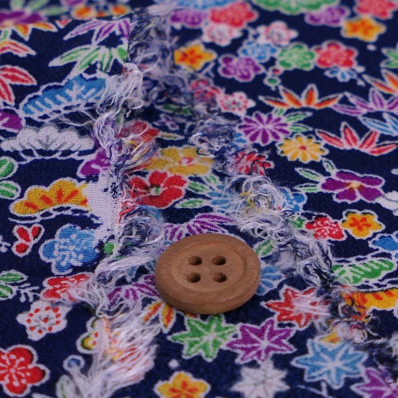 おめでたい模様がにぎやか 一越ちりめん生地 吉祥植物柄(赤) 10cm単位 切り売り