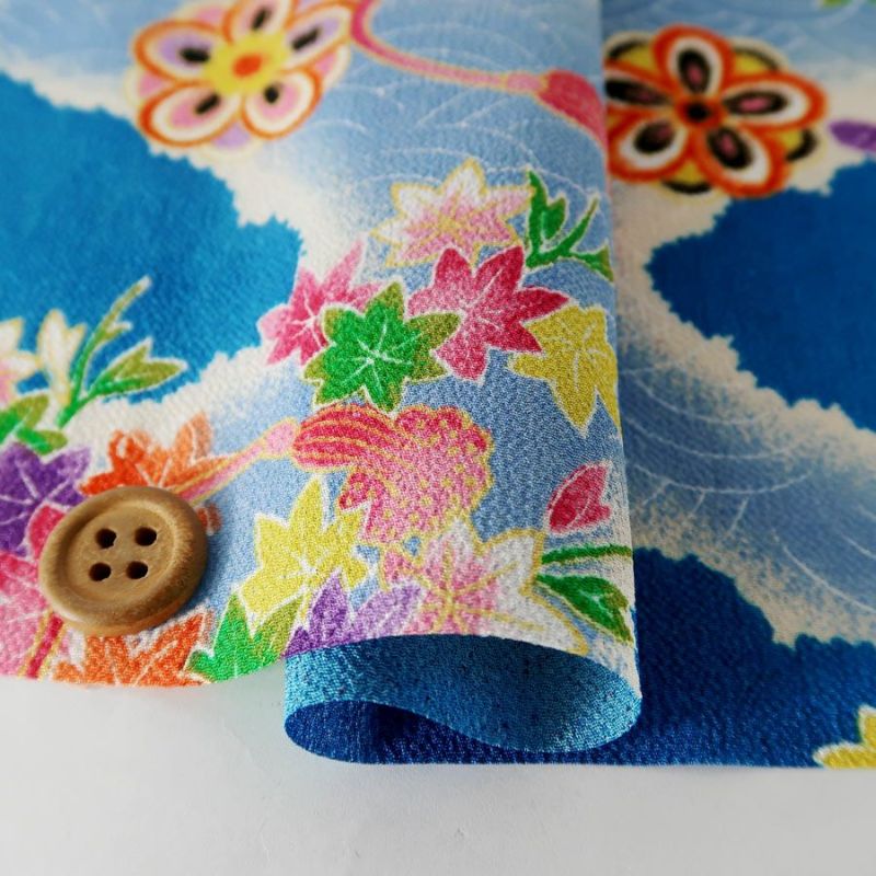 華やかな花御所車柄が素敵♪ 一越ちりめん生地 花御所車に手まり(青) 10cm単位 切り売り