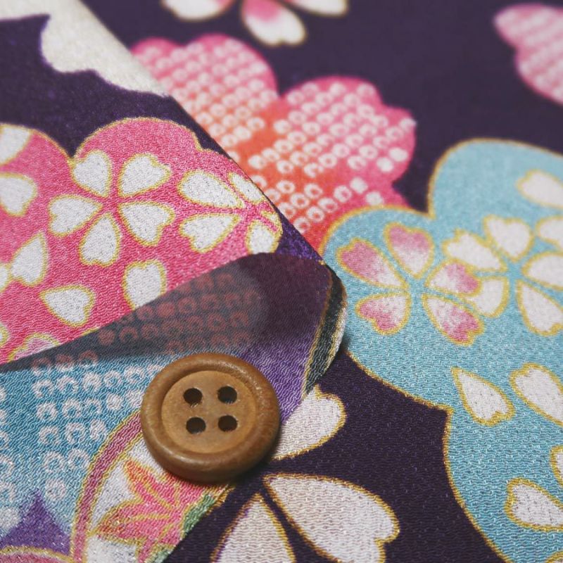 一越ちりめん・梅と桜(黒) 10cm単位 切り売り