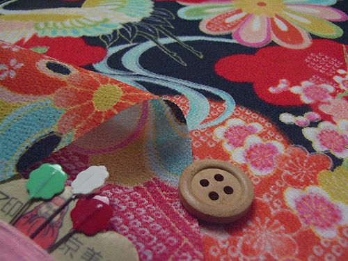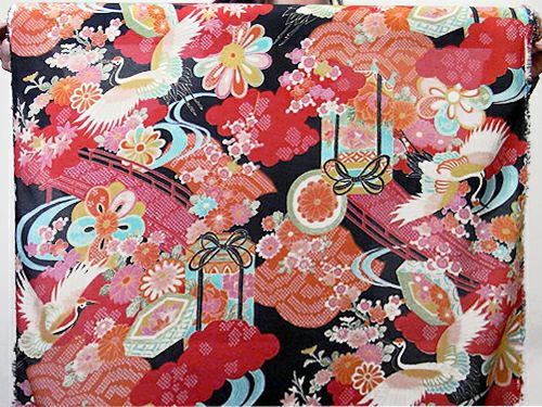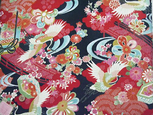 11年ぶりの復活! 一越ちりめん・貝桶に鶴(ひわ色) 10cm単位 切り売り