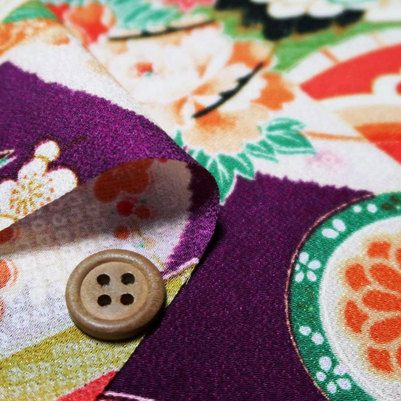 商品案内京都の友禅工場に保存されていた40年程前の友禅型をそのまま使って手捺染で染め上げた生地です。当時、女の子の着物用に製作されたもので、懐かしい雰囲気いっぱいの古布再現ちりめんです。手捺染(説明は下に)ならではの精緻な柄も魅力。柄も大きすぎず使いやすいと思います。