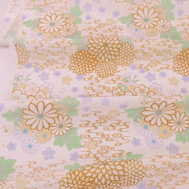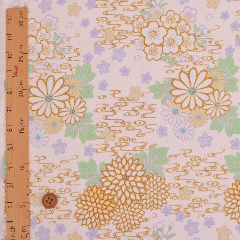 縮緬手芸・小物に 一越ちりめん生地 観世水に菊と桜(白/ピンク) 10cm単位 切り売り