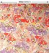 このちりめんは手捺染~布の上に型を置き、人の手によって染めていく方法で染色されました。機械染めよりはるかに手間がかかりますが、機械では不可能な多色使いにより深みのある精巧な染めが可能です。実物をご覧いただくと納得していただけると思います。