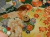 アンティーク調の正統派古典柄が魅力。 一越ちりめん・青海波に御所車(黒/赤) 10cm単位 切り売り