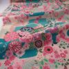 このちりめんは手捺染~布の上に型を置き、人の手によって染めていく方法で染色されました。機械染めよりはるかに手間がかかりますが、機械では不可能な多色使いにより深みのある精巧な染めが可能です。実物をご覧いただくと納得していただけると思います。