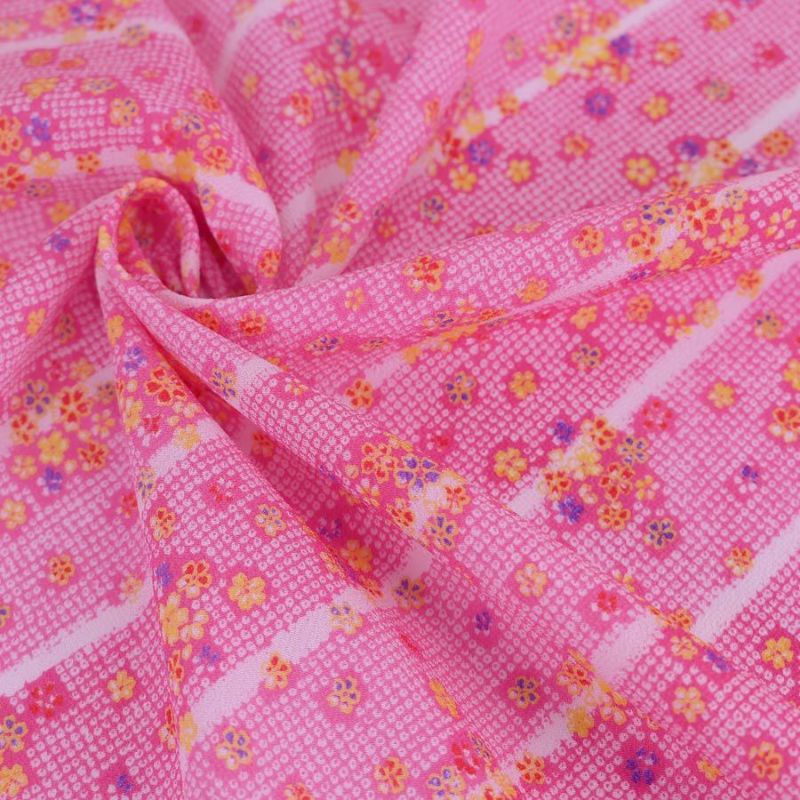 斜めラインの疋田しぼりがオシャレ 一越ちりめん生地 斜めかのこに小桜(赤/さんご) 10cm単位 切り売り