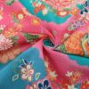 一越ちりめん生地 雲取り花鼓文様(青/ピンク)