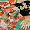 古布再現柄 華やかちりめん生地 一越ちりめん 鶴に扇(黒) 10cm単位 切り売り