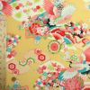 ●黄色っぽいベージュ地に染め出された古典柄は、上品でやさしい印象。このような色の古典柄ちりめんは珍しいので、手元にあると手作りの幅も広がりますね。