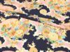 一越ちりめん・扇に菊と牡丹(黒) 10cm単位 切り売り