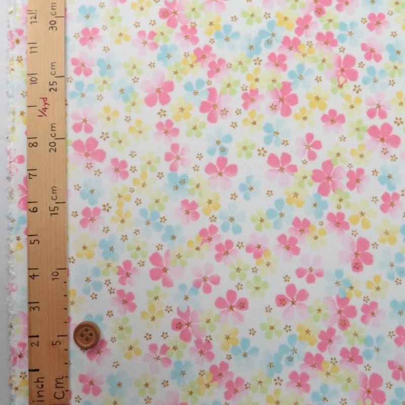 つまみ細工や手芸に 一越ちりめん生地 ふうわり花(白/桃色) 10cm単位 切り売り