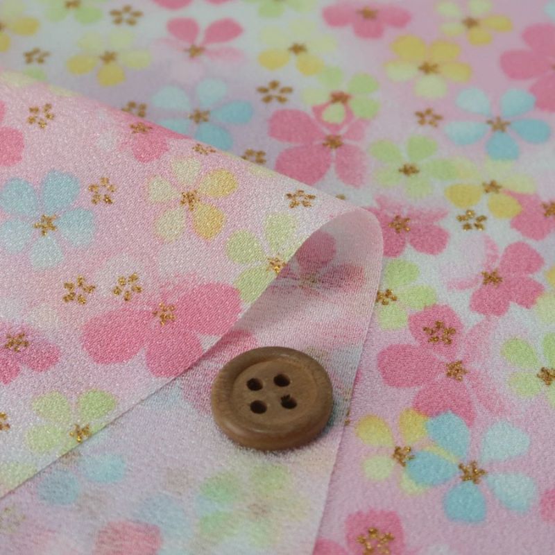 ●薄いピンク地にピンク・水色・黄色・黄緑のお花。ロマンチックなかわいさ満点です。