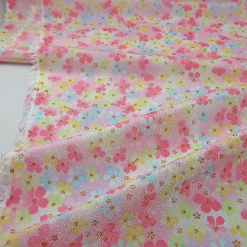 つまみ細工や手芸に 一越ちりめん生地 ふうわり花(ピンク) 10cm単位 切り売り