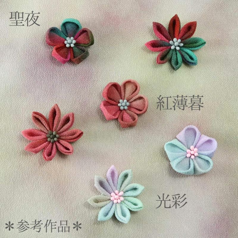 薄手で扱いやすい素材感を生かして、つまみ細工や押絵、ちりめん手芸の材料として広くお使いください。
