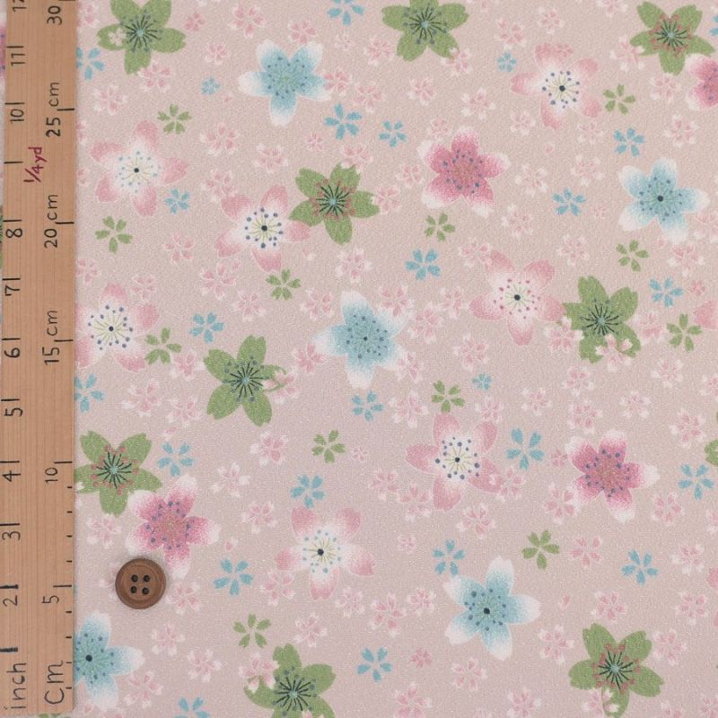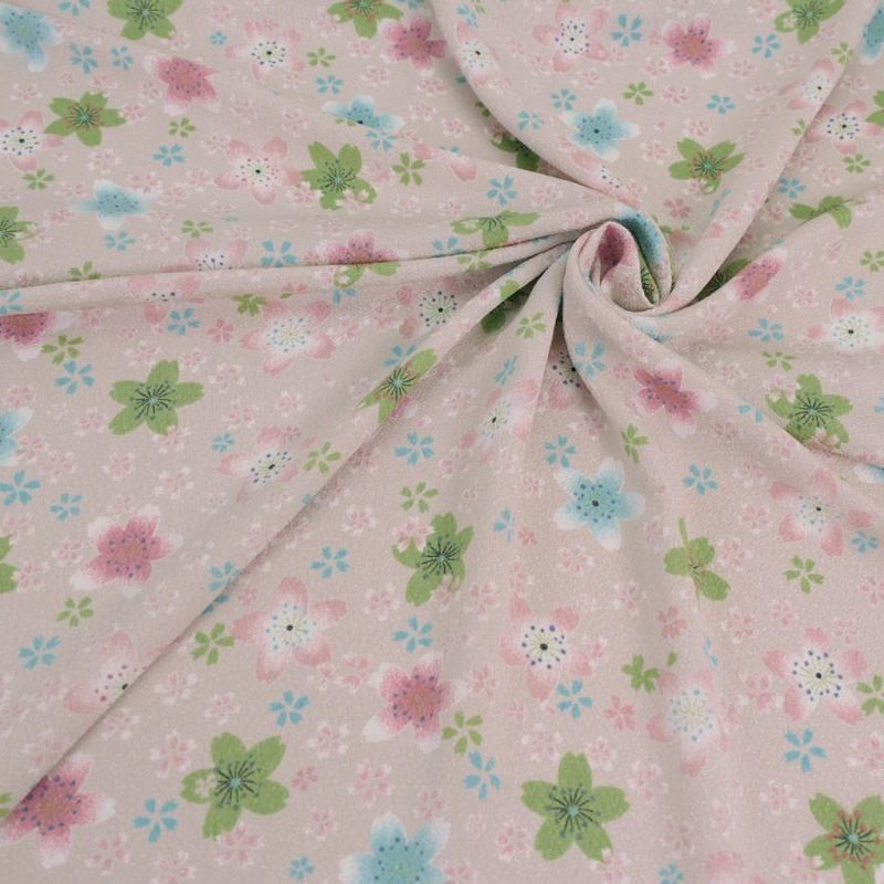 商品案内大小さまざまな桜が散りばめられた可愛いポリちりめん生地。ふんわりした優しい色合いが今の雰囲気。