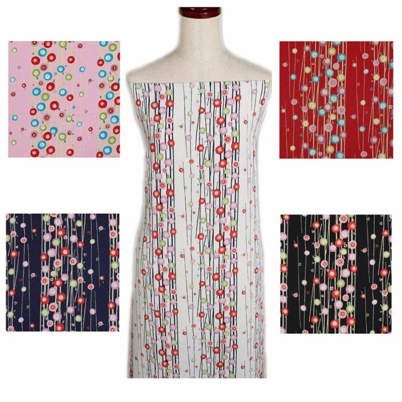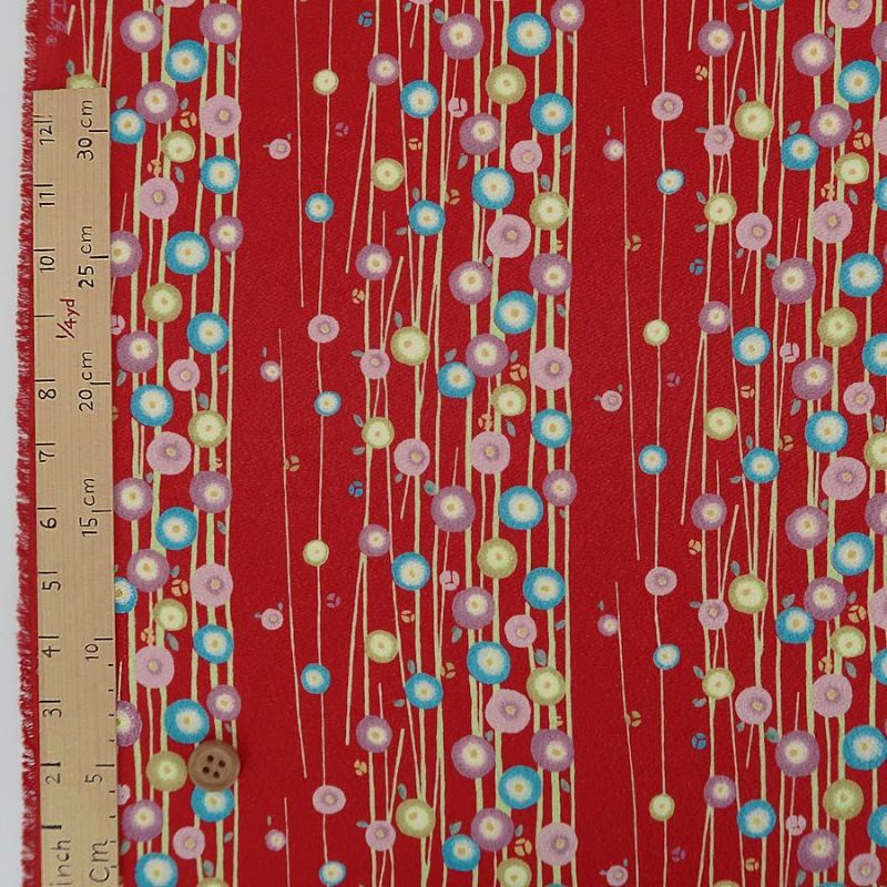 七五三の着物・半衿に可愛い洗えるちりめん 在庫限り/ ポリちりめん生地 小さな丸椿(濃紺) 10cm単位 切り売り