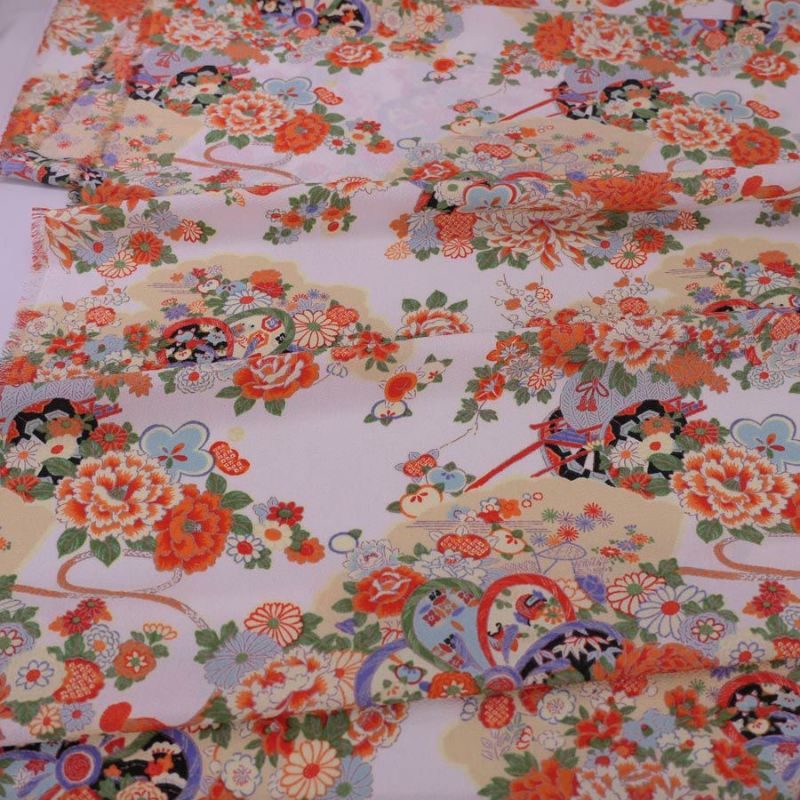 七五三など子どもの着物に ポリちりめん生地 花御所車の雅び(水色) 10cm単位 切り売り