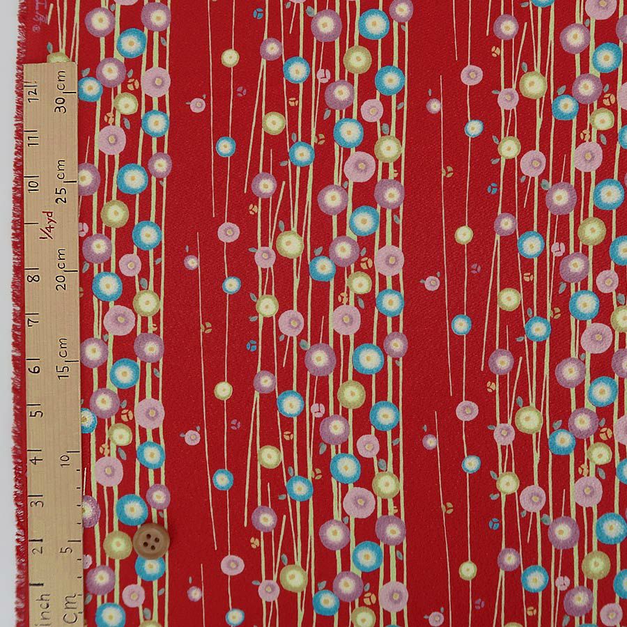 ポリちりめん生地・大菊小菊(赤) 10cm単位 切り売り
