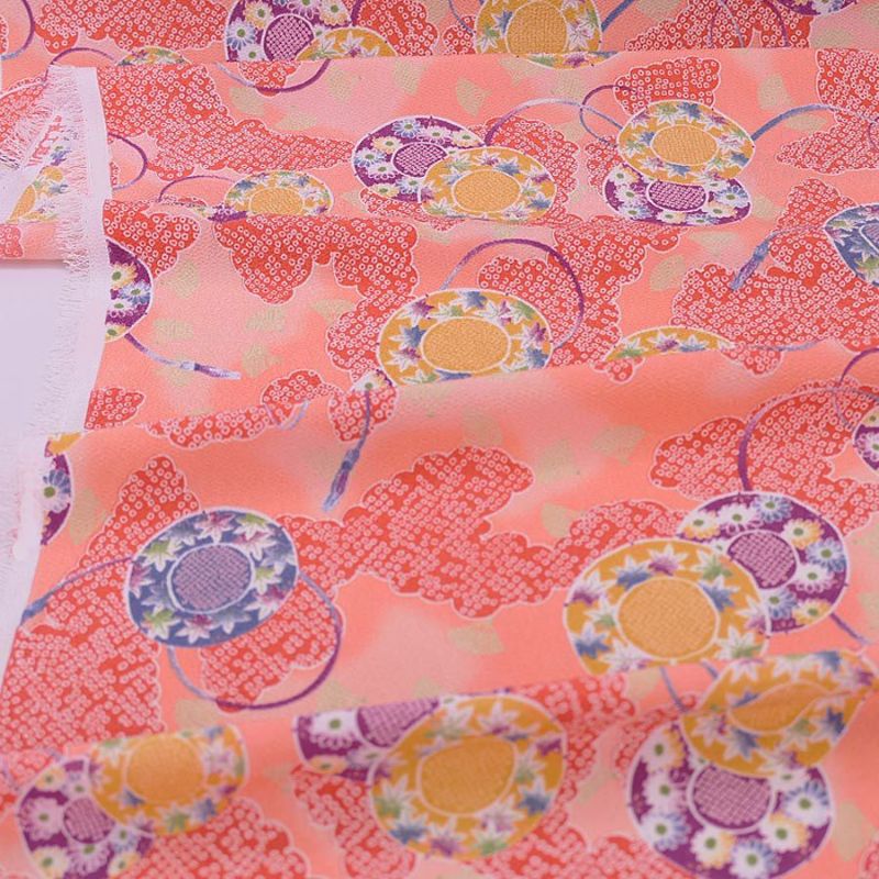 手づくりの着物にも!あらえる縮緬 ポリちりめん生地 花御所車の雅び(アイボリー) 10cm単位 切り売り