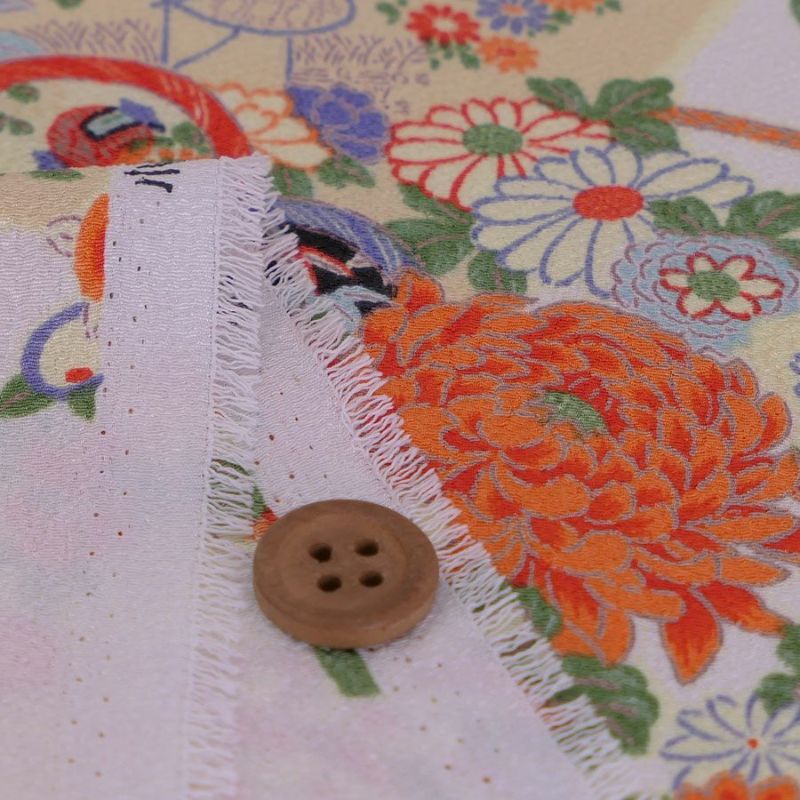七五三など子どもの着物に ポリちりめん生地 花御所車の雅び(水色) 10cm単位 切り売り