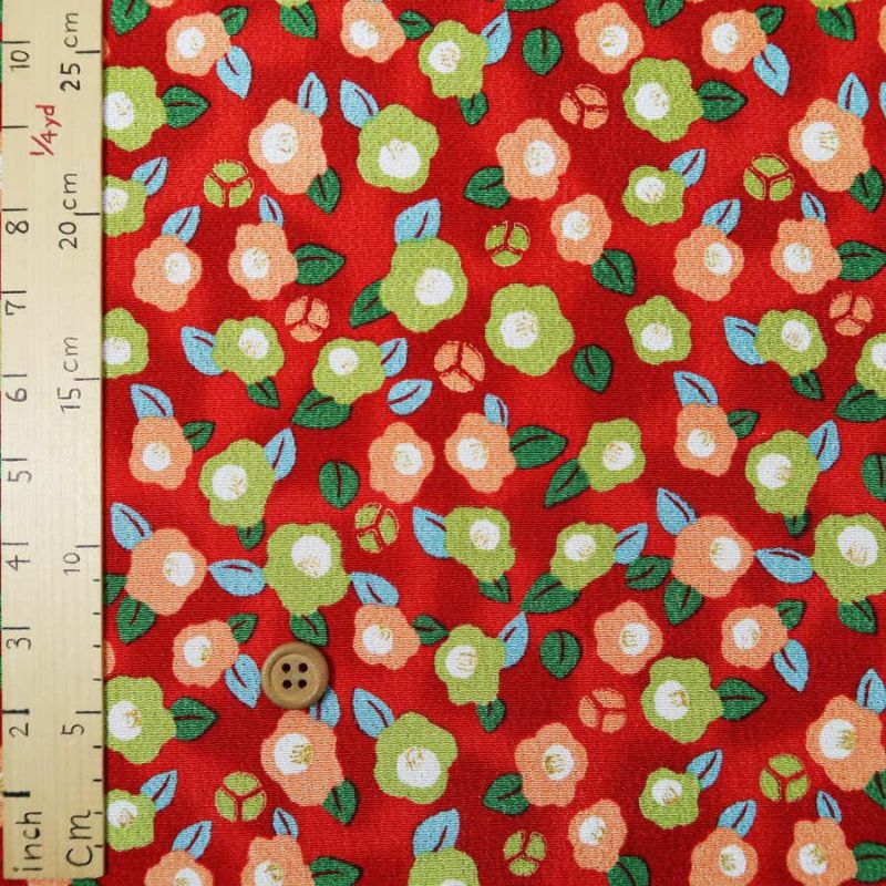 愛らしい花柄ちりめん♪ ちりめん生地・華かんざし(赤) 10cm単位 切り売り