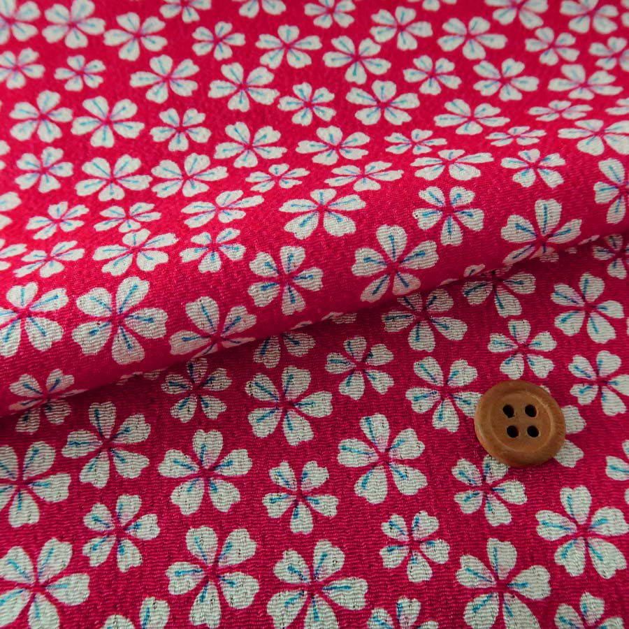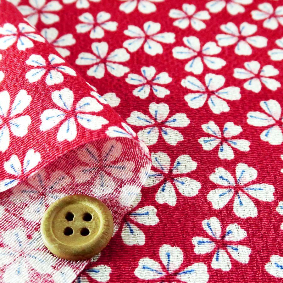 ちりめん生地・桜の夢(赤) 10cm単位 切り売り