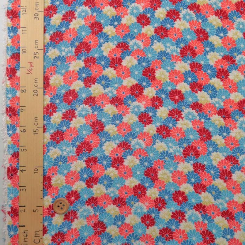 再入荷しました! ちりめん生地 小菊詰め(青) 10cm単位 切り売り