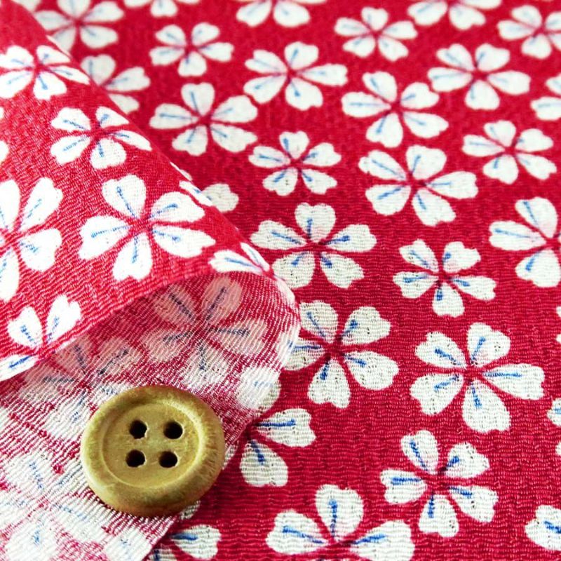 ちりめん生地・桜の夢(赤) 10cm単位 切り売り