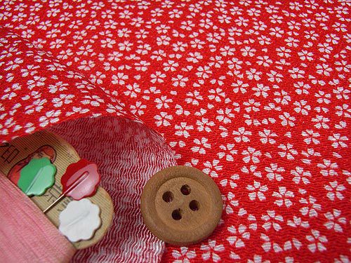 赤地に白の小桜が一面に咲く、可憐な柄のちりめん生地です。