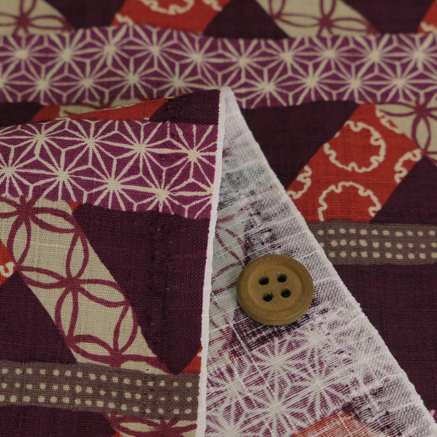 和柄コットン生地 雲形に和文様づくし(紫) 10cm単位 切り売り