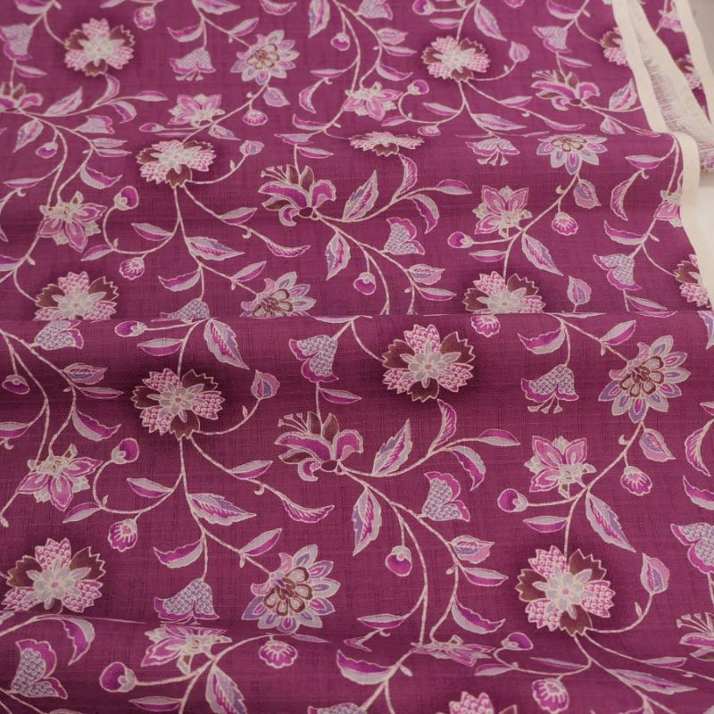 やわらかいパープル 在庫限り/和柄コットン生地 更紗風花柄(京藤) 10cm単位 切り売り