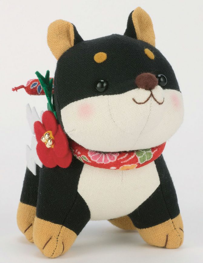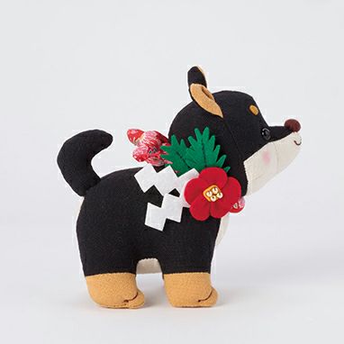 商品案内 戌年の干支ぬいぐるみ手作りキット♪ お正月らしいちりめんの首輪も愛らしい黒い柴犬です。