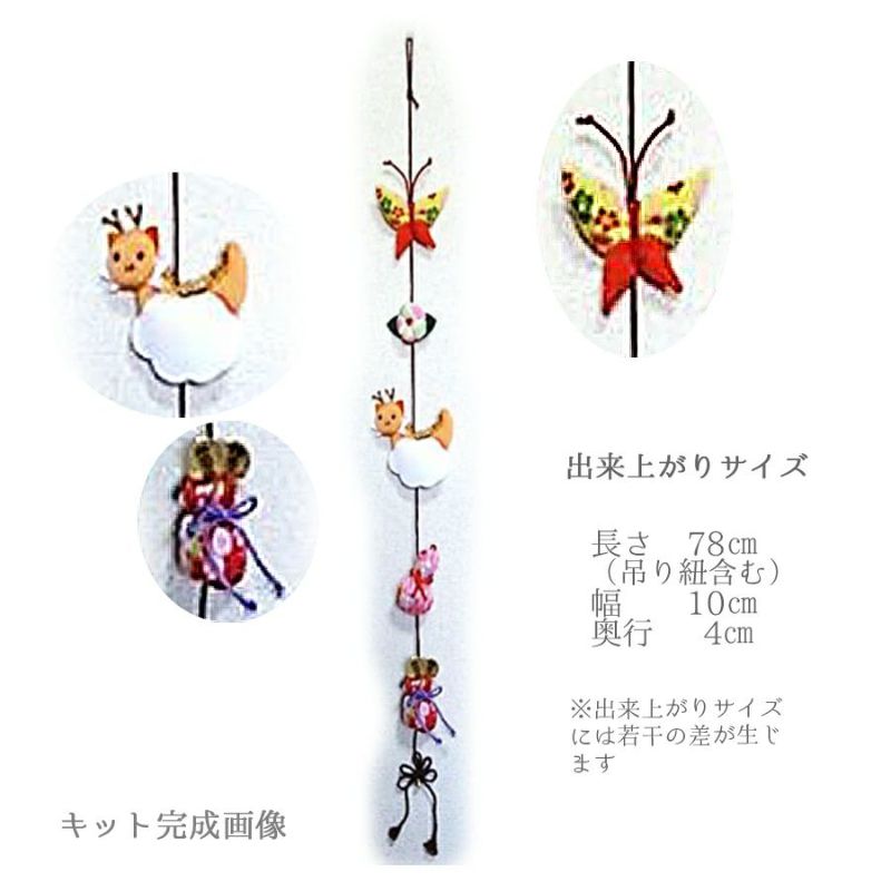 ●キット内容:ちりめん布地、フェルト、紐、鈴、小判、金モール、目玉釦、テトロン綿、作り方説明書
