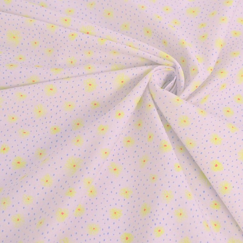 コットン生地 手描き風のお花とドット(黄色の花) 10cm単位 切り売り シーチング生地 可愛い小花柄 女の子向きフローラルプリント