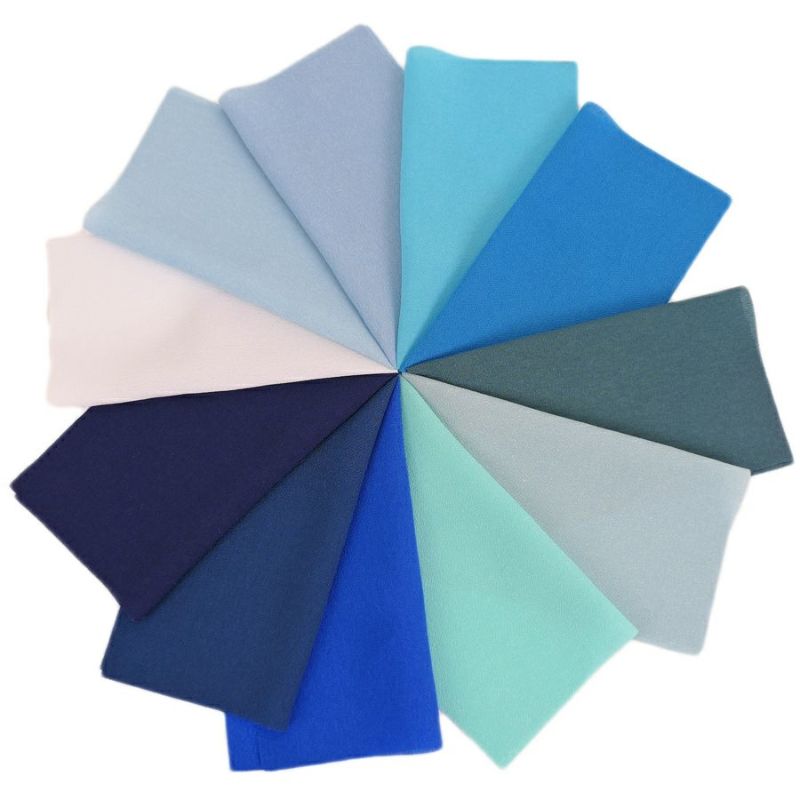 商品案内つまみ細工やちりめん手芸に便利!青系の無地一越ちりめんを11色セットで。