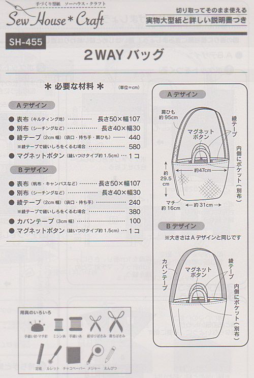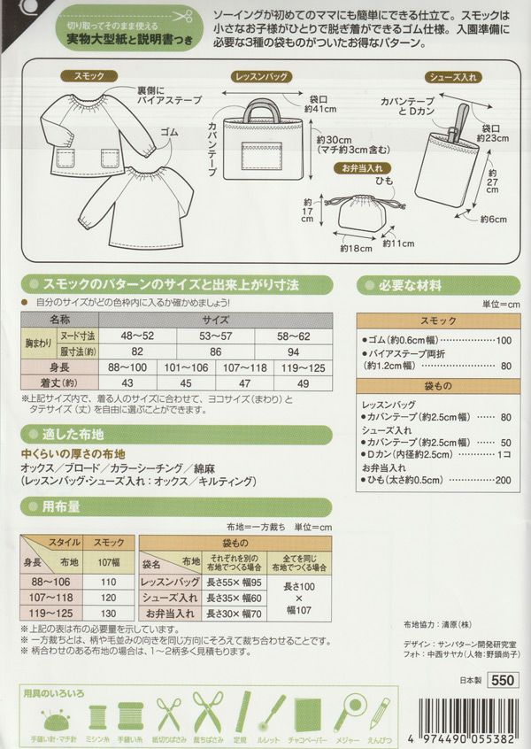 レッスンバッグ・シューズ入れ・お弁当入れのパターンつき!