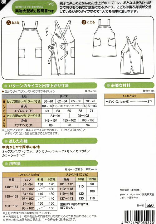実物大型紙・かんたんエプロン(レディ・こども男女)