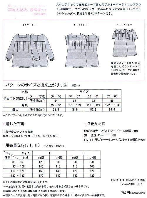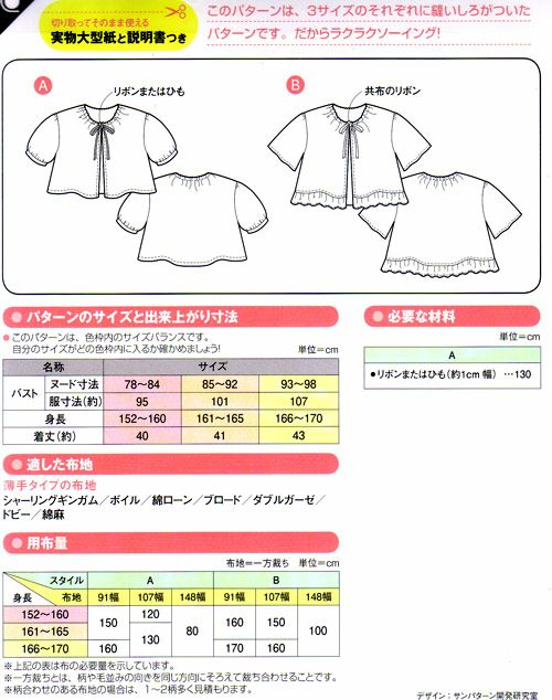 生産終了/在庫限り 実物大型紙・こどもヨークチュニックブラウス